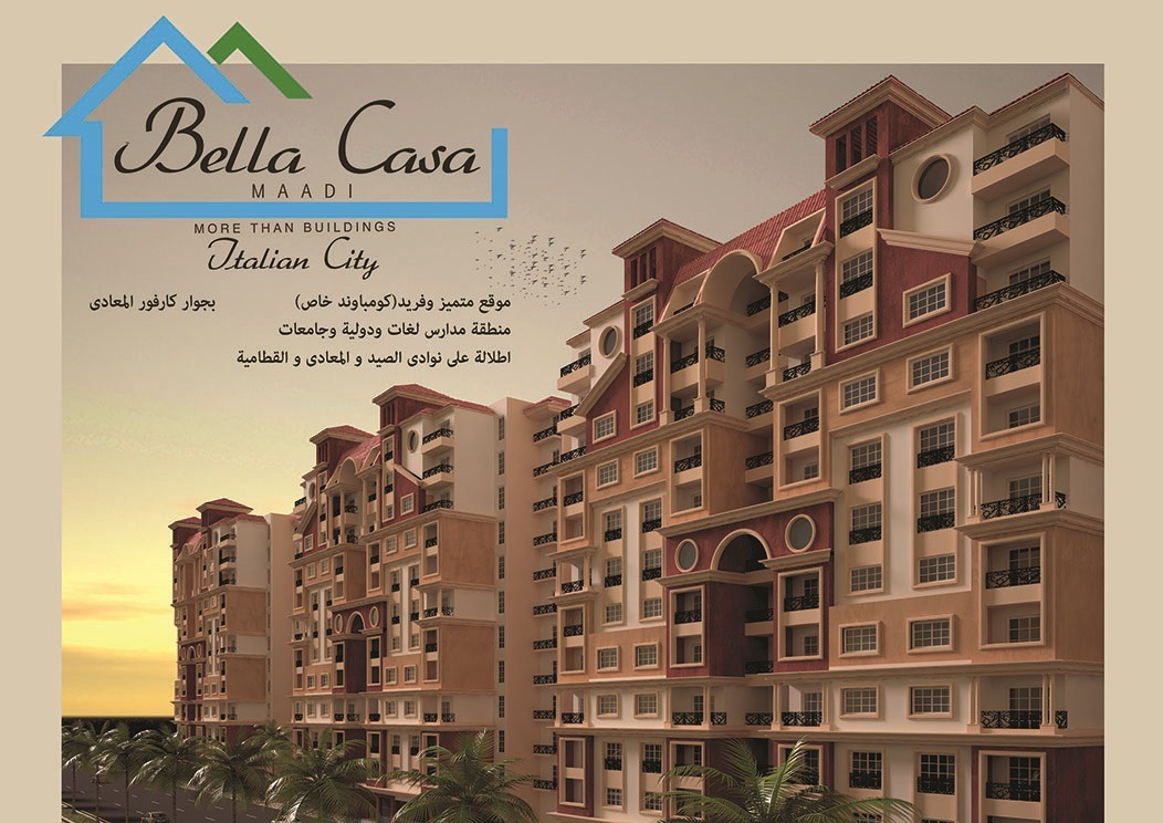 Bella Casa Project area is located upscale Maadi Zahraa Maadi district, upscale and close to many Of roads and the main axes of many areas Vividness and public services, schools and universities In addition to its presence next to many clubs